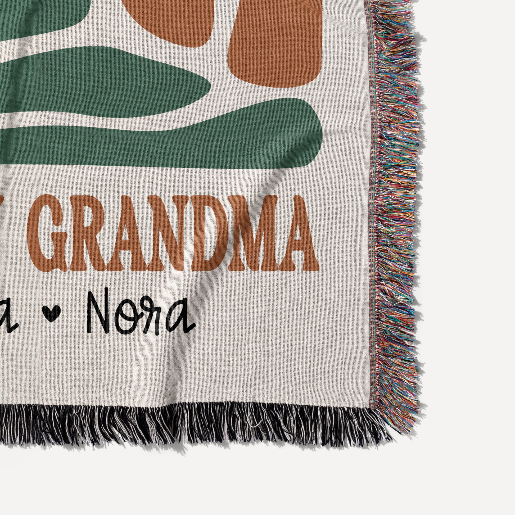 Wrap Grandma in love with our 100% cotton woven blanket, beautifully personalized with your family’s names and the heartfelt message “We Love You Grandma.” Each blanket is carefully woven, not printed, giving it a rich texture and timeless quality. Made from soft, premium cotton, it’s perfect for cozy movie nights, afternoon naps, or adding a warm touch to any room. A meaningful gift she’ll treasure forever, ideal for birthdays, Christmas, Mother’s Day or any moment you want to make her feel special.